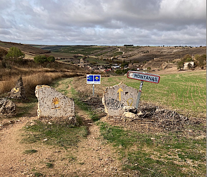 The distance to Hontanas is about 15 kms. It is not a long distance as other hiking days. This is the meseta and your inner self is going through moments of introspection. Several times during my hikes I have walked from Burgos directly to Hontanas. I recommend a stay at Hontanas & must stay at Castrojeriz. This is a short hike day the following day to explore the Village of Castrojeriz and the Roman Castle at the hilltop.