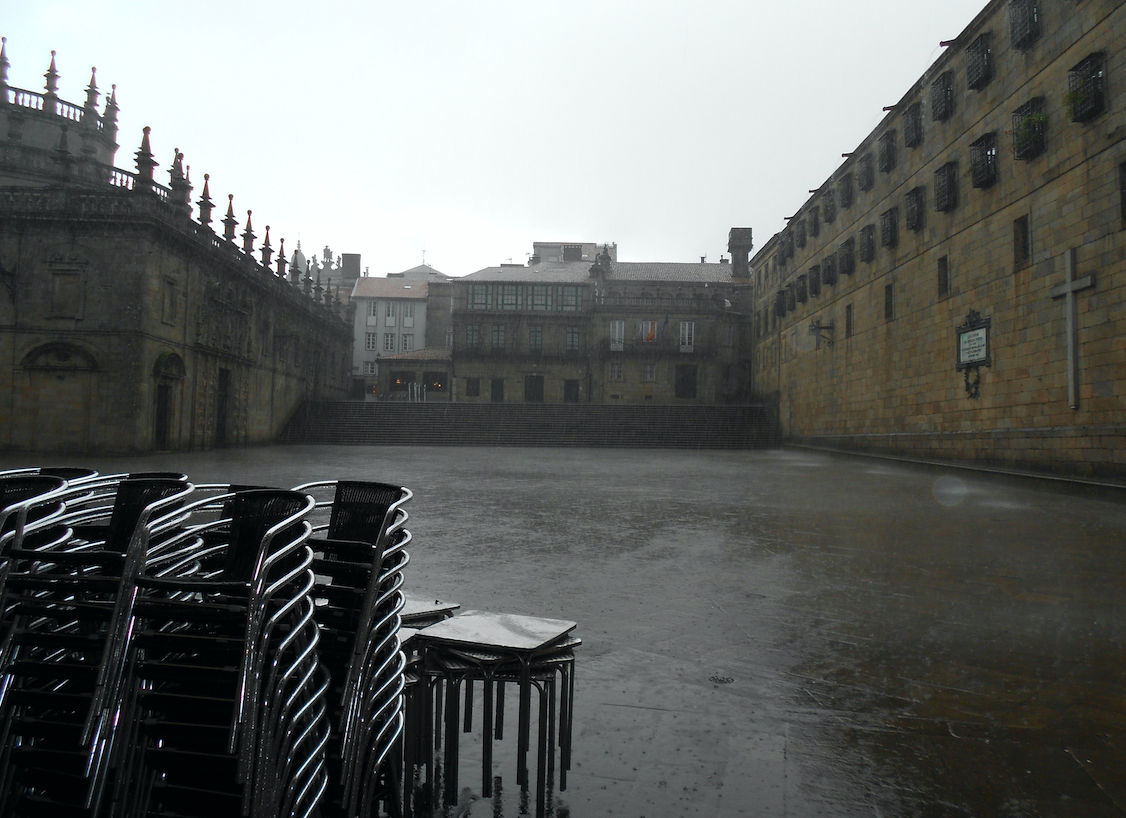 Today we start the hike at the Village of Pedrouzo and reach the historic city of Santiago de Compostela. There are two choices today. Take the bus at Pedrouzo to Santiago or hike the way. The terrain today is industrial & asphalt. After Lavacolla, you will arrive close to a main highway and cross into Santiago de Compostela where several government offices are located. In Santiago, the old bus station was located in this section but has been relocated near the Renfe train station. The center point you will be looking for is the Santiago Cathedral Plaza. Sit down at the Plaza in front of the Cathedral and reflect about your long journey to Santiago. This is a rare lifetime experience. Congratulations on your journey !!