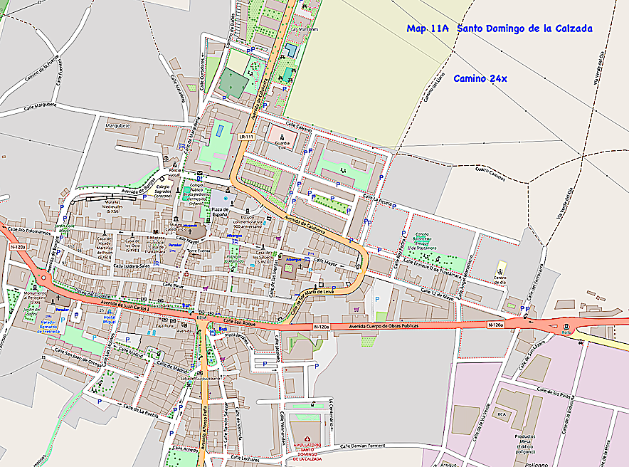 The hike today we leave the Village of Najera and arrive at Santo Domingo de la Calzada. The early morning hike can be cold because of the proximity to the snow cap mountains. The terrain is fairly flat. The first village for a morning stop is Azofra. Santo Domingo is a village from medieval times. However, construction has taken over, so it is no longer a small village. The hike is open terrain. Santo Domingo has several albergues and 2 parador hotels. It has a famous church with a medieval legend, and a museum. Santo Domingo has a good transportation infrastructure with bus connections to Logroño or Burgos. Santo Domingo belongs to the region of La Rioja.